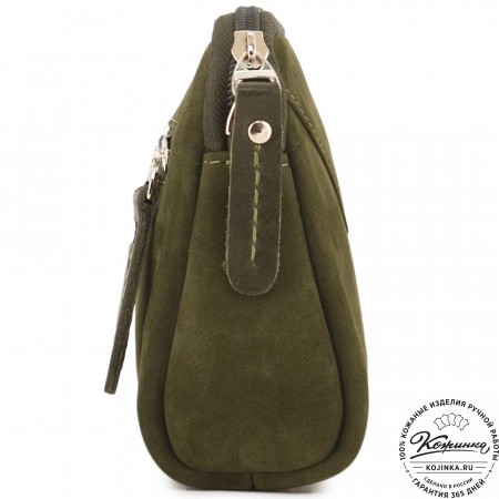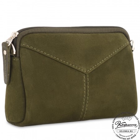 Внутри два вместительных отделения для купюр или документов, которые разделены между собой карманом на молнии. У боковой стенки одного из отделений расположен большой открытый карман. Второй открытый карман находится с противоположной стороны.