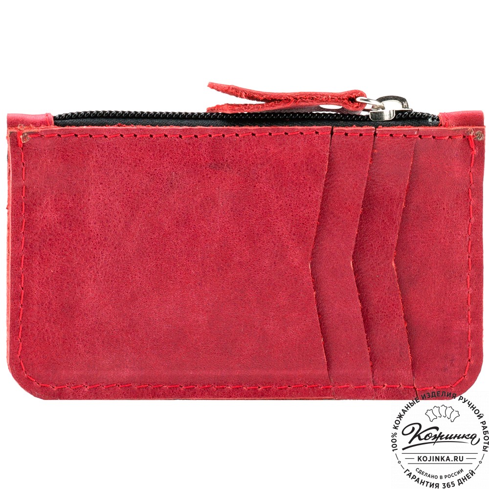 В картхолдере одно отделение на молнии и три кармашка для пластиковых карт.