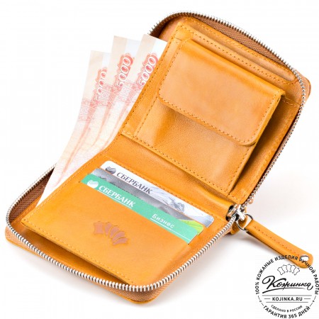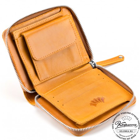 Кожаное портмоне "Германия" (бежевое) - отличный вариант небольшого бумажника с отделениями для карт, купюр и мелочи.