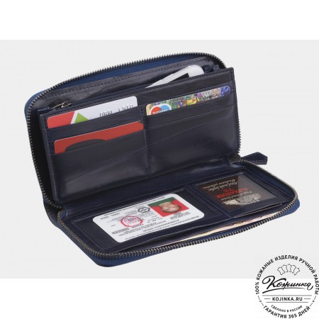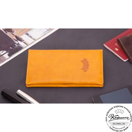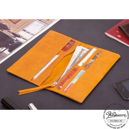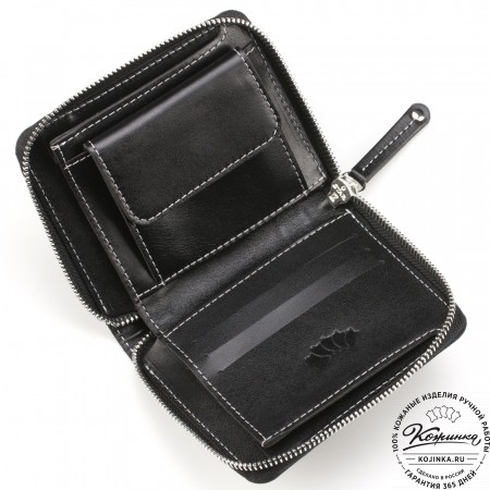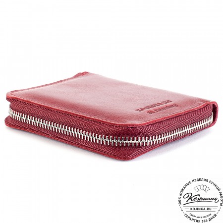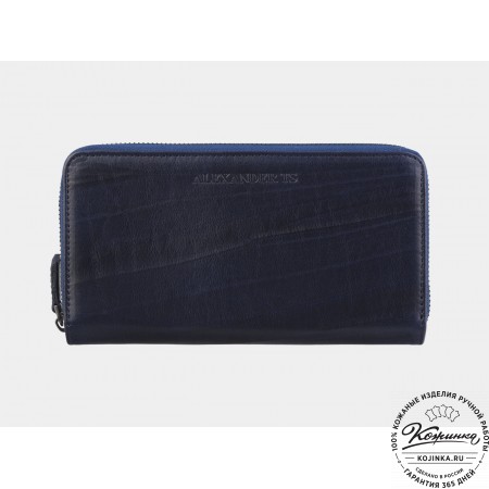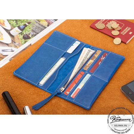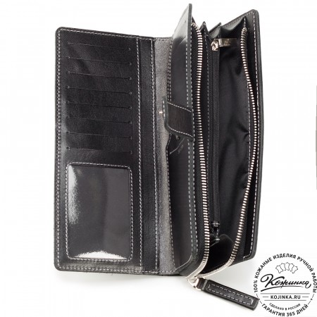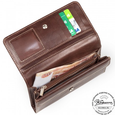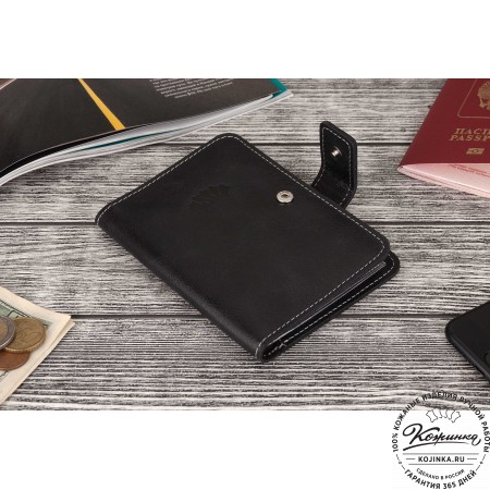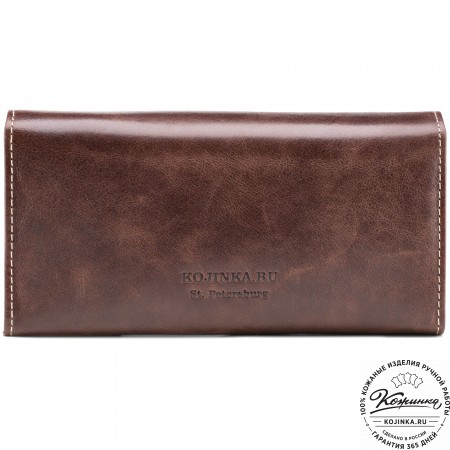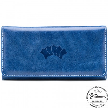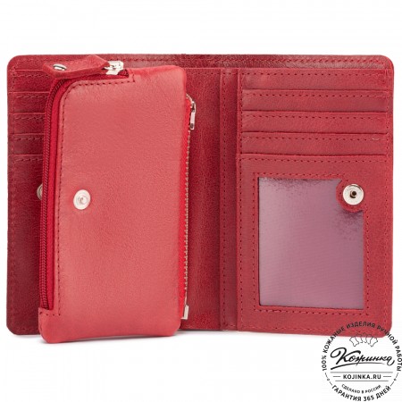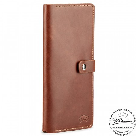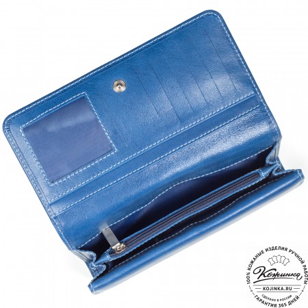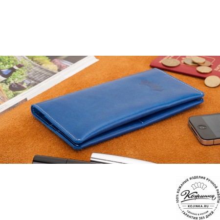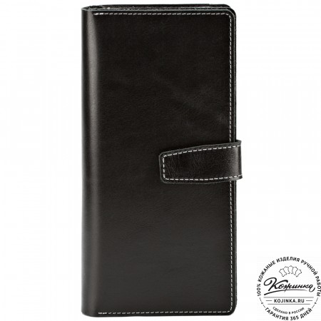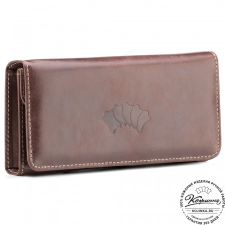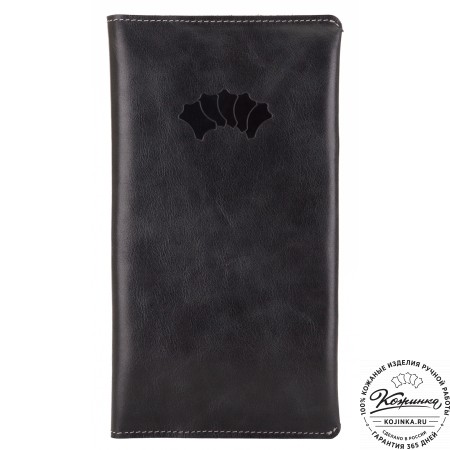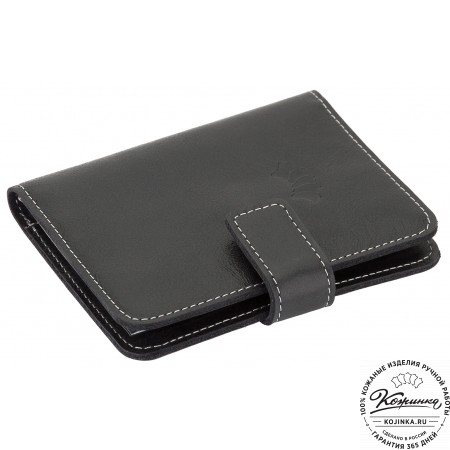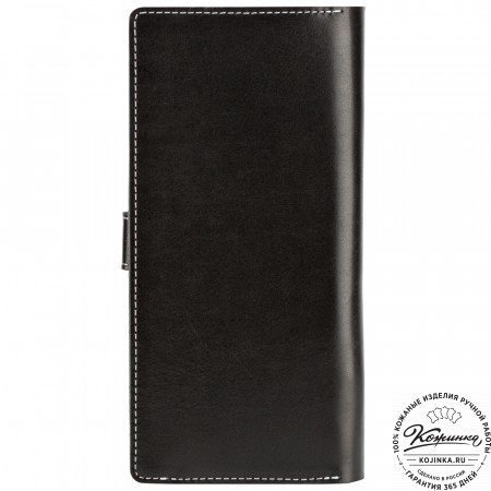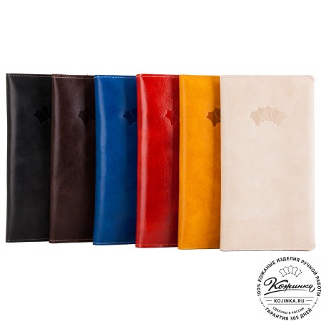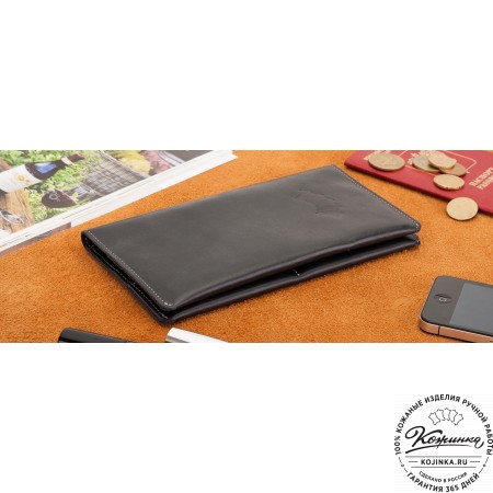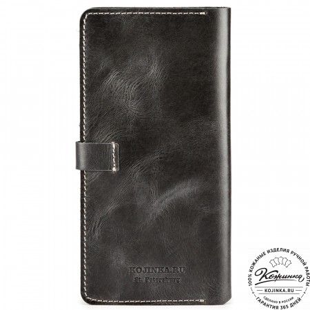Портмоне, как и вся коллекция, выполнено в мягкой, но достаточно толстой коже высокого качества. Фиксируется в закрытом состоянии на хлястик с кнопкой.