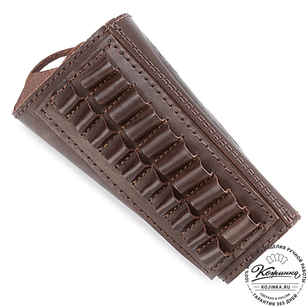 Двурядный кожаный патронташ на приклад для 10 патронов калибра 7,62.