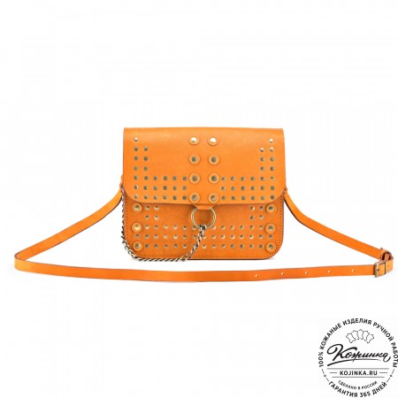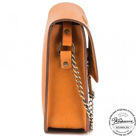 Сумочка изготовлена из качественной натуральной кожи, имеет одно отделение, которое закрывается на молнию. Сверху сумочка закрывается клапаном на магнитной кнопке.