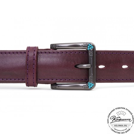 Кожаный ремень B40-1306 (бордо) - женский джинсовый ремень из фактурной натуральной кожи.
