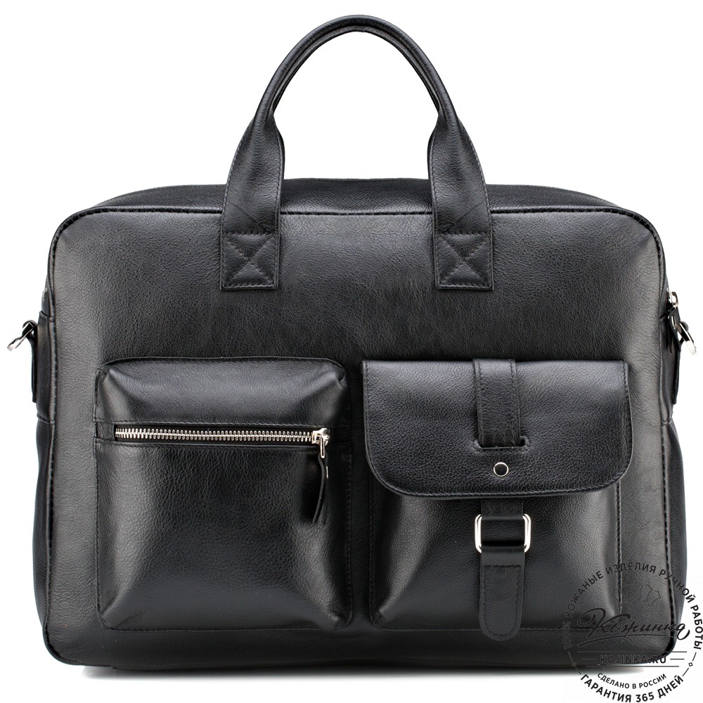 Кожаная деловая сумка "Райли" (черная) – удобная мужская сумка из прочной натуральной кожи. Оригинальные карманы и впечатляющая вместительность – вот что отличает эту модель от всех остальных!