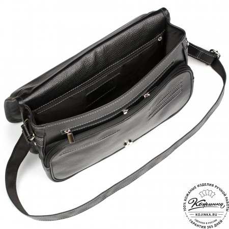 У сумки удобный кожаный плечевой ремень, усиленный с внутренней стороны стропой для прочности. Ремень съемный, крепится по бокам на ременные пряжки, регулируется по длине.