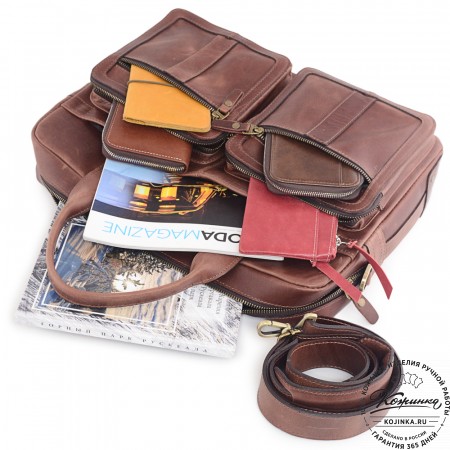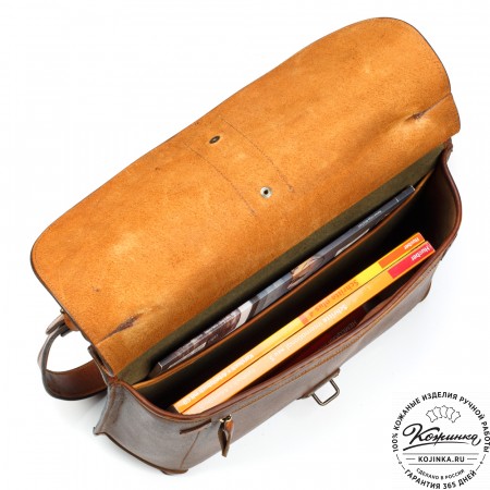 Все вместе закрывается клапаном с двумя кожаными ремешками, под которыми находятся удобные портфельные пряжки.