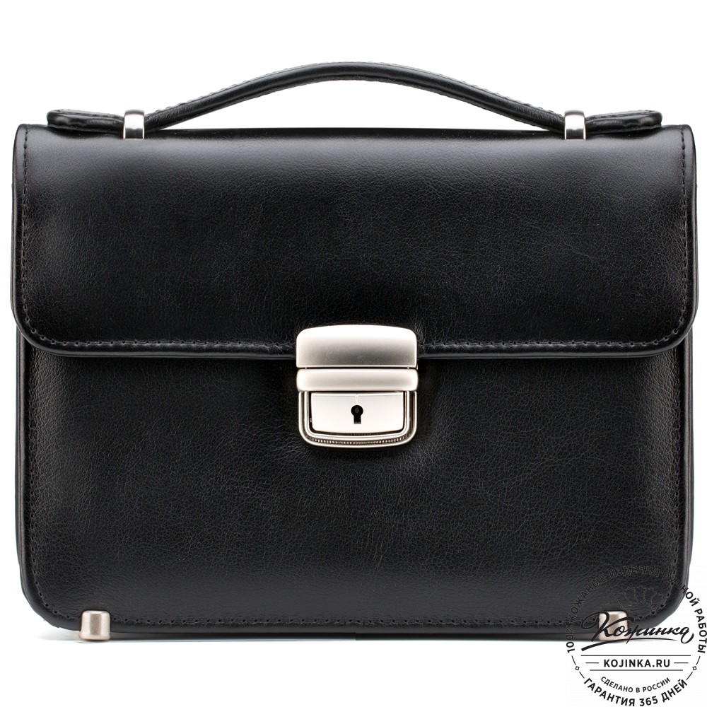 Барсетка закрывается клапаном на удобный портфельный замок.