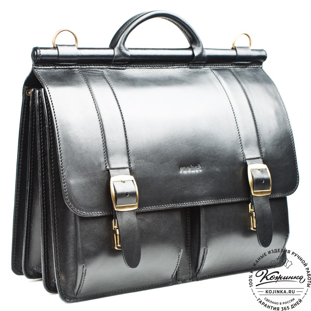 Мужской кожаный портфель "Префект" (чёрный) - деловой портфель из 100% натуральной толстой кожи.