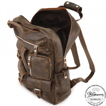 Кожаный рюкзак "Бэнжамин" – стильный городской рюкзак из качественной натуральной кожи.