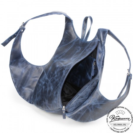 Широкие кожаные лямки удобно лежат на плечах, их можно отрегулировать по длине.