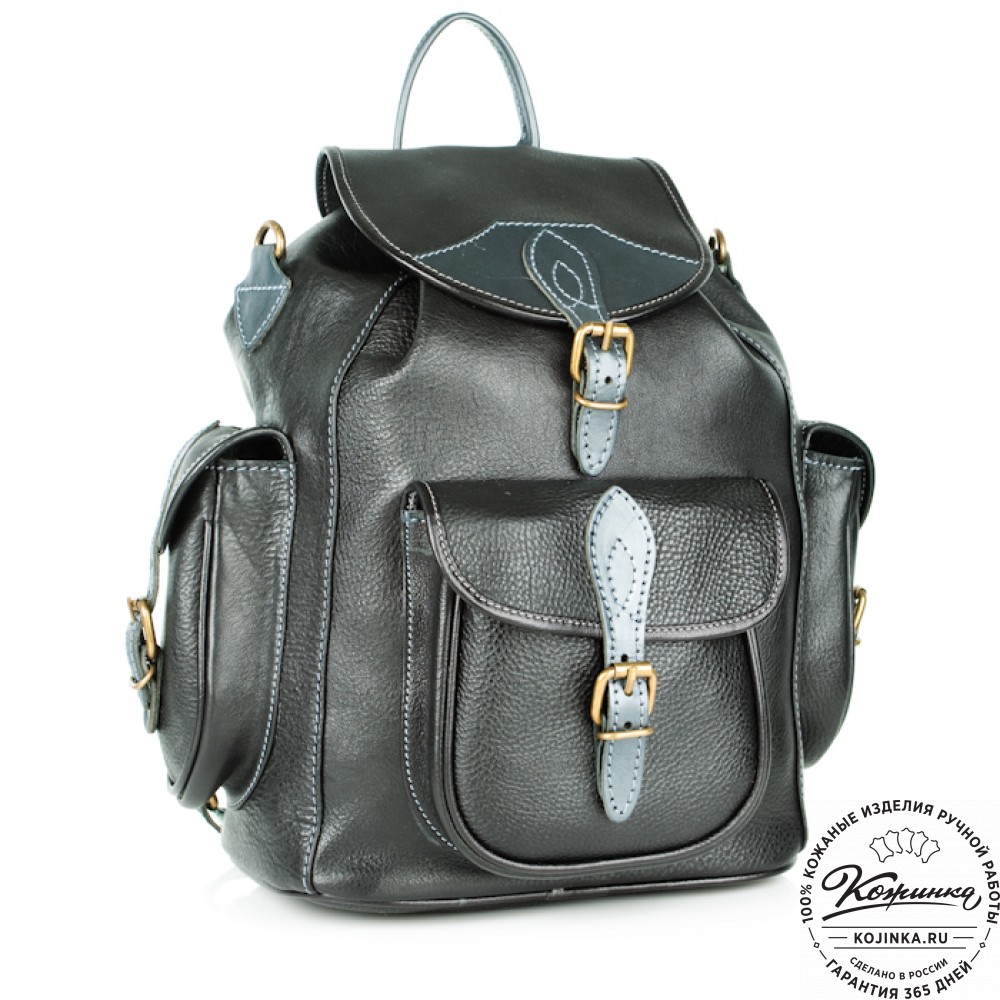 Внутри одно вместительное отделение, три наружных боковых вместительных кармана. Удобный настраиваемые плечевые ремни. Сверху крепкая кожаная ручка.