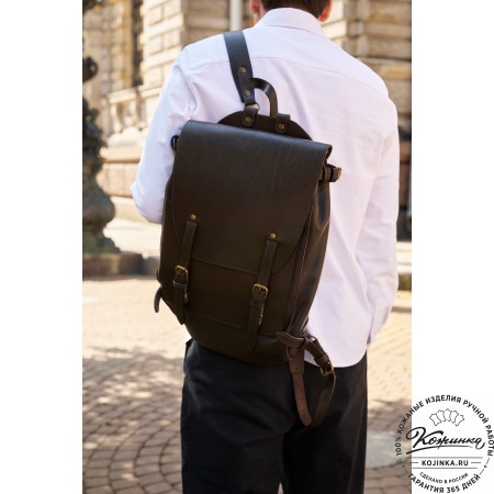 На модели представлен рюкзак "Вассерман" в темно-коричневом цвете.