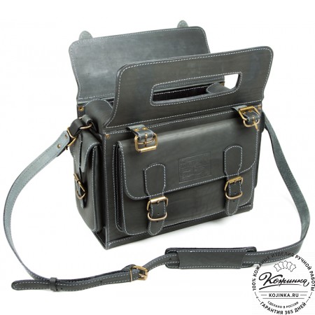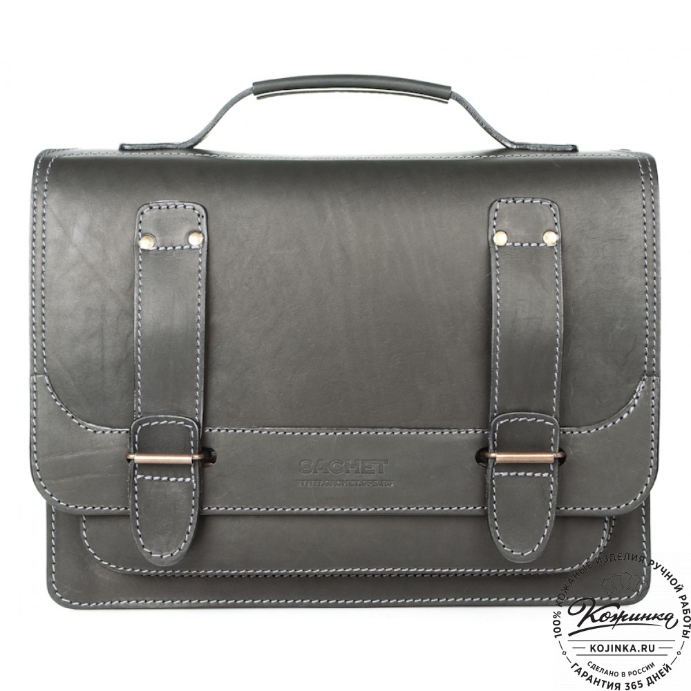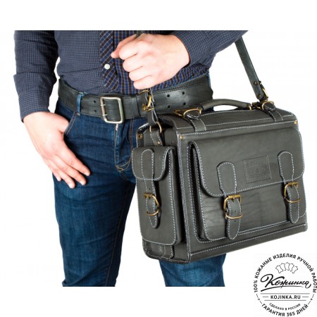 Портфель из 100% натуральной толстой кожи, закрывается на удобные петли. Внутри одно просторное отделение. На задней стенке основного отделения расположен карман на молнии и дополнительный карман без молнии (под планшет). Удобные кожаные "ушки" по боковым стенкам основного отделения. Передний накладной карман имеет скрытые малые кармашки на молнии и дополнительные для визиток.