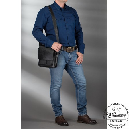 Кожаная сумка "Гарольд" (чёрная) – удобная сумка-планшет из натуральной кожи.
