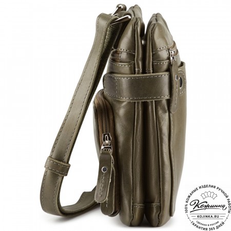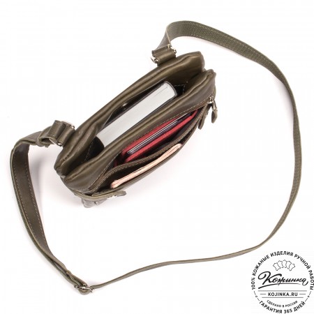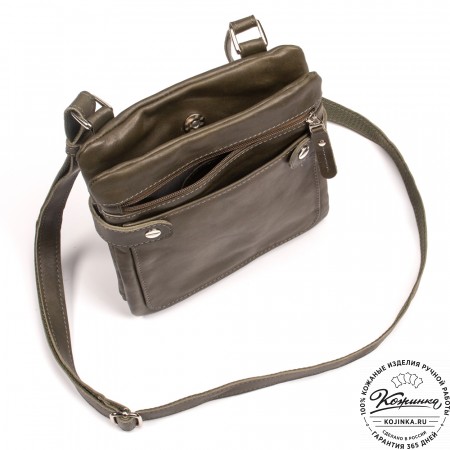 Плечевой ремень регулируется по длине пряжкой. Свободный конец ремня аккуратно фиксируется кожаным кольцом.