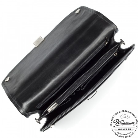 Портфель изготовлен из высококачественной натуральной кожи и прочной фурнитуры.
