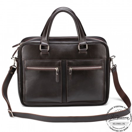 Кожаная деловая сумка "Спайк" (чёрная) – удобная деловая сумка для ноутбука и документов. Строгая и лаконичная модель как снаружи, так и внутри - ничего лишнего, все по делу!