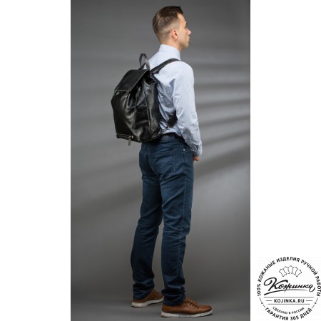 Кожаный рюкзак "Бэнжамин" (синий антик) – стильный городской рюкзак из качественной натуральной кожи.