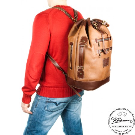 На моделях представлены рюкзак "Бэнжамин" коричневого цвета и рюкзак из кожи Крейзи хорс коричневого цвета.