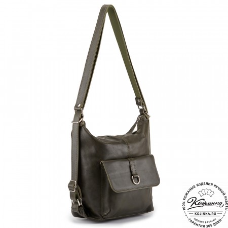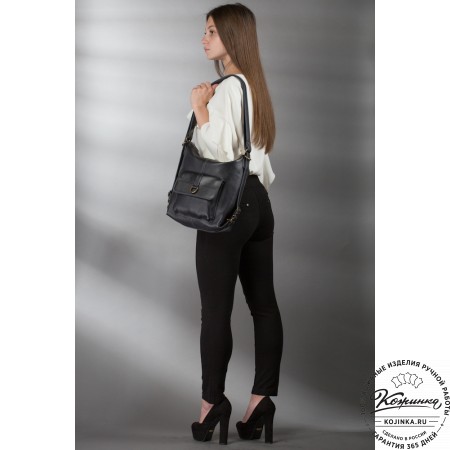 Женский кожаный рюкзак-сумка "Греция" (синий антик) – модный и стильный, вместительный и удобный рюкзак–трансформер, который можно носить и как рюкзак, и как сумку!