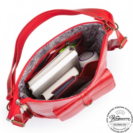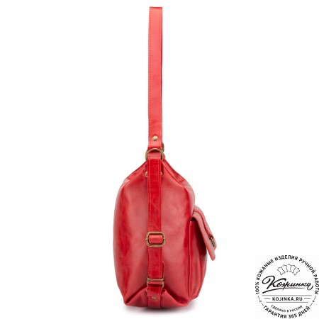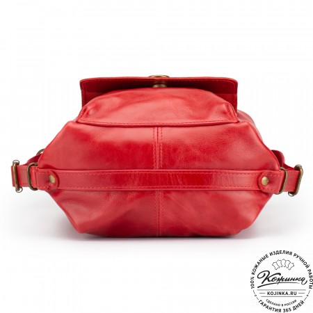 На модели представлен рюкзак-сумка "Греция" рыжего цвета.