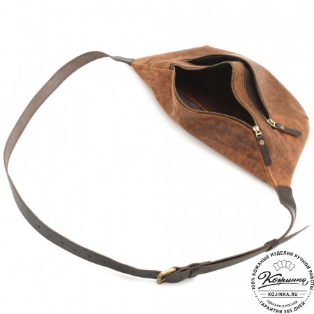 Кожаная сумка "Камиль" (песочный крейзи) – практичная и вместительная модель, которую можно носить и как сумку на пояс, и как нагрудную сумку. Удобно и стильно!