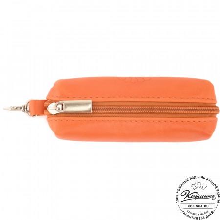 Внутри на кожаных петлях расположены металлическое кольцо для ключей и небольшой металлический карабин.