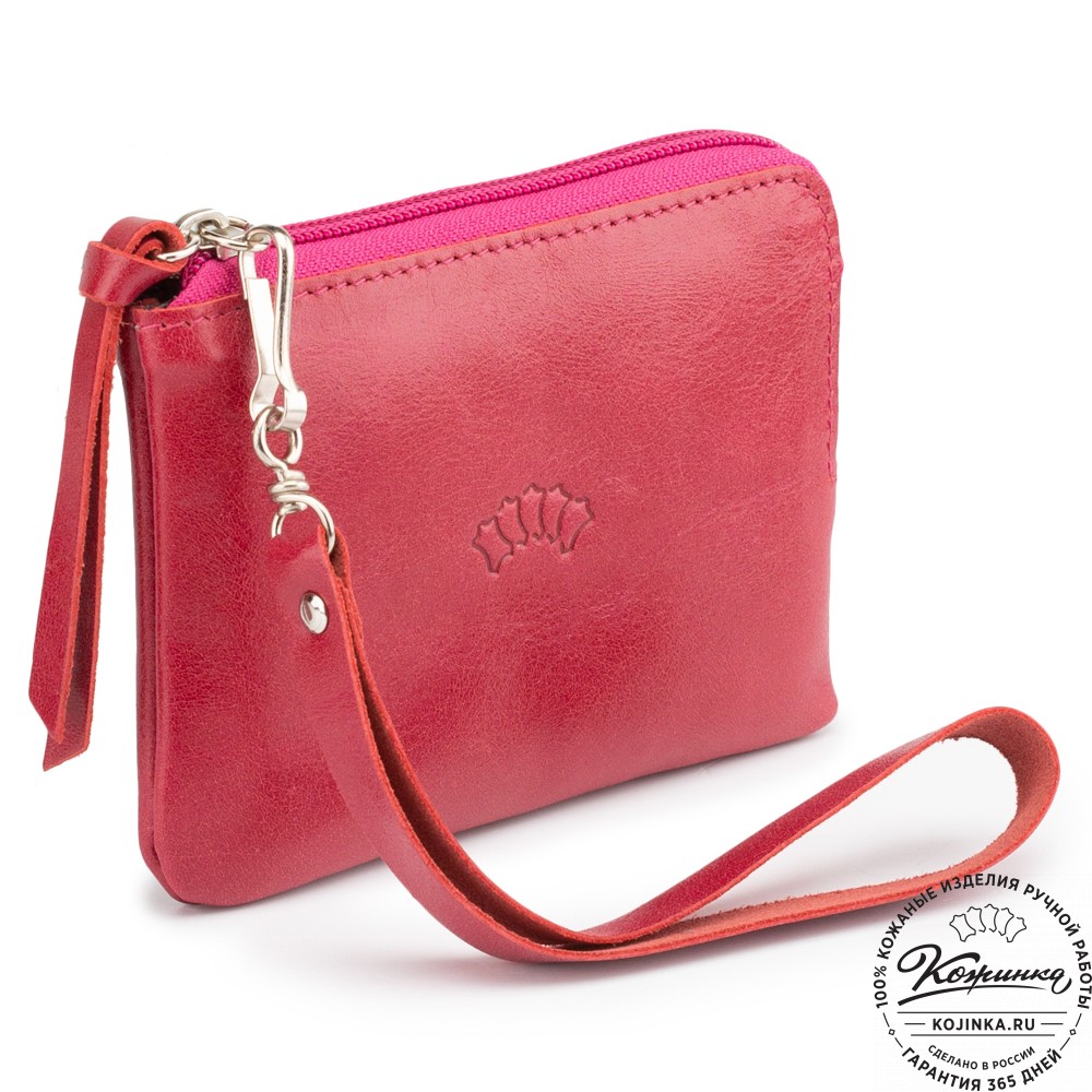 Особенность модели – съемная ручка-петля, которая позволяет носить кошелек в руках, как клатч. Ручка крепится на небольшой металлический карабин.